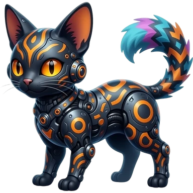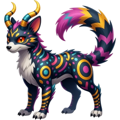 Rare warm-colored exotic edgy epic aesthetic gloomy spooky dark modern colorful cyber-Genet-Trico-species-Fakemon-hybrid-creature, with beautiful intricate markings, full body emoji