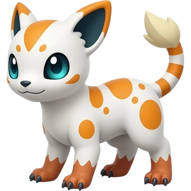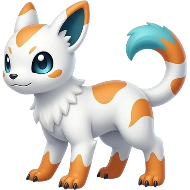Rare realistic exotic cute white gloomy whitish and orange and cyan epic pretty beautiful handsome gorgeous aesthetic colorful vibrant Vernid-Trico-species-Fakemon-Salandit-hybrid-creature by LiLaiRa, 4 legs, 1 tail, random markings, (full body) emoji