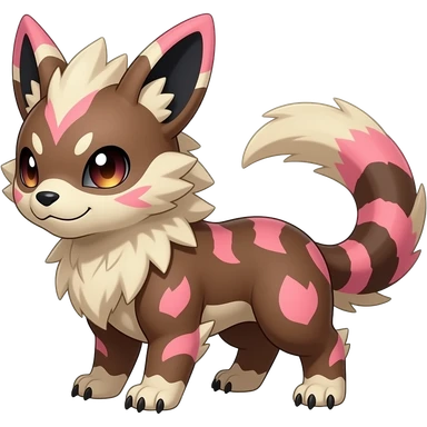Rare realistic brown-scaled pink, white beige edgy badass epic pretty beautiful handsome gorgeous aesthetic colorful vibrant Vernid-Minccino-Cinccino-Furret-Linoone-Amaura-species-Fakemon-creature by LiLaiRa, random markings, (full body) emoji
