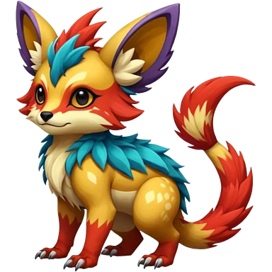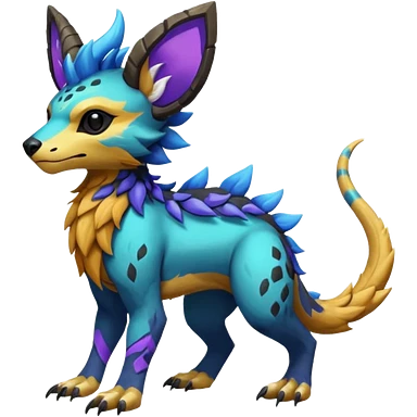 Rare realistic exotic edgy epic pretty beautiful handsome gorgeous aesthetic colorful vibrant Vernid-Trico-species-Fakemon-creature by LiLaiRa, 4 legs, 1 tail, random markings, tufted ears, (full body) emoji