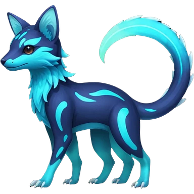 Rare realistic dark-neon glowing bioluminescent edgy badass epic pretty beautiful handsome gorgeous aesthetic colorful vibrant Vernid-Trico-species-Fakemon-creature by LiLaiRa, 4 legs, 1 tail, random markings, (full body) emoji