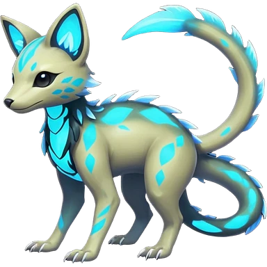 Rare realistic black edgy toxic radioactive-themed black fur with neon-lime-green-glowing epic handsome gorgeous aesthetic vibrant Vernid-Trico-Genet-species-hybrid-Fakemon-creature by LiLaiRa, 4 legs, 1 tail, random markings, (full body) with tiny spikes on tailemoji
