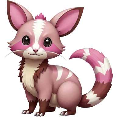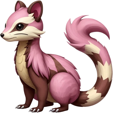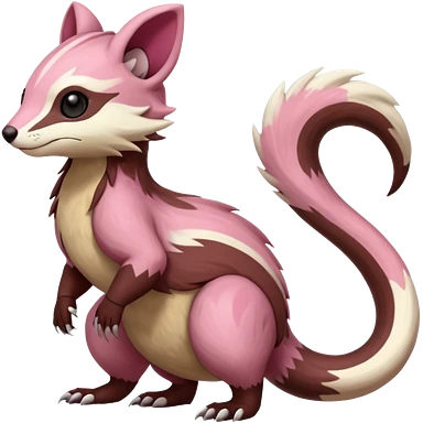 Rare realistic brown-scaled pink, white beige edgy badass epic pretty beautiful handsome gorgeous aesthetic colorful vibrant Vernid-Minccino-Cinccino-Furret-Linoone-Amaura-species-Fakemon-creature by LiLaiRa, random markings, (full body) emoji