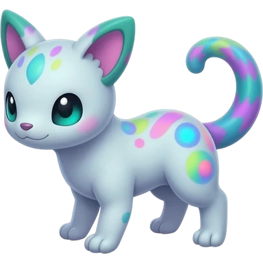 Rare realistic exotic pastel cute epic pretty beautiful handsome gorgeous aesthetic colorful vibrant Vernid-Trico-species-Fakemon-creature by LiLaiRa, 4 legs, 1 tail, random markings, (full body) emoji