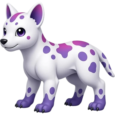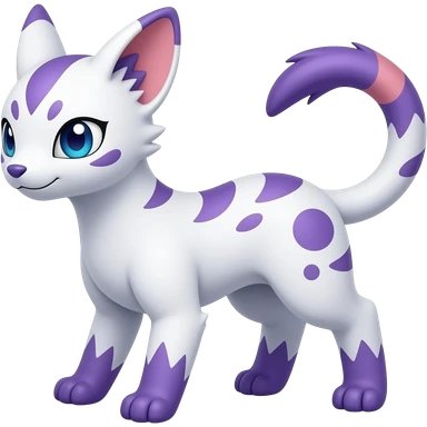 Pure-Snow-White albino cute with indigo-Violet-purple-pinkish-gradient markings beautiful handsome gorgeous aesthetic colorful vibrant Vernid-Trico-species-Fakemon-creature by LiLaiRa, 4 legs, 1 tail, random markings, (full body) emoji
