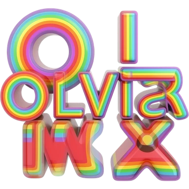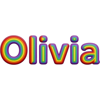name "Olivia" in raspberry red 3D style typography lettering, each color of the rainbow as a border outlined around each letter, isolated, 3d rendering, no emoji icons no emoji faces and must have no human figures emoji