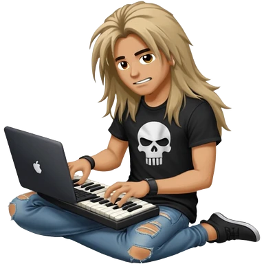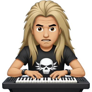 A long haired keyboardist headbanging, the keyboardist is rebellious in their clothing style. emoji