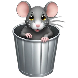 black humanoid rat in a suit throwing a heart in the trash emoji