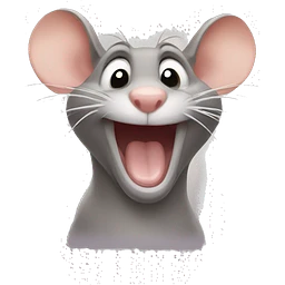 A Rat that is laughing out loud with a finger pointing at the person that read the text emoji
