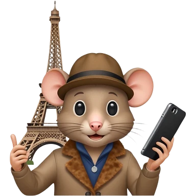 Rat tourist taking selfie in front of Eiffel Tower emoji