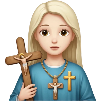 Fille aux cheveux roux frisés avec des lunettes et un pendentif crucifix emoji