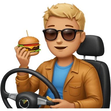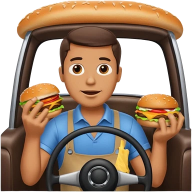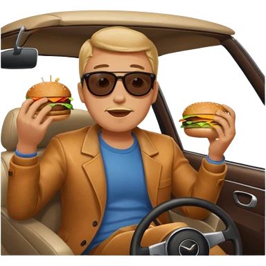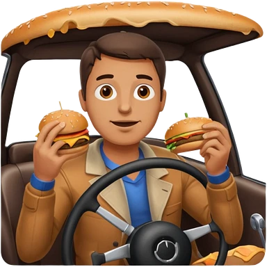 make a man eating a burger and then driving a car emoji