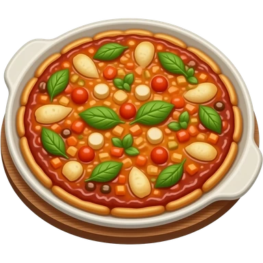 comida ratatouille, vegetais coloridos em uma travessa redonda, visual apetitoso emoji