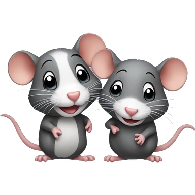 Two cute rats interact with each other in different ways. One rat is white, the other rat is red emoji