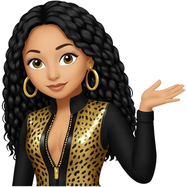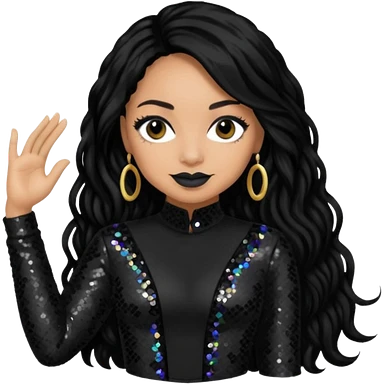 Raven Symone from Cheetah Girls with long jet black hair, black sequin outfit emoji