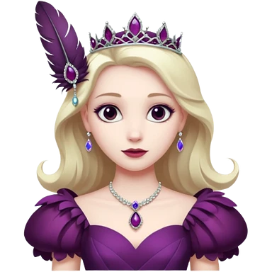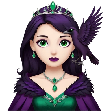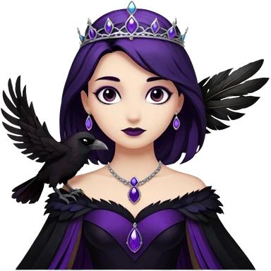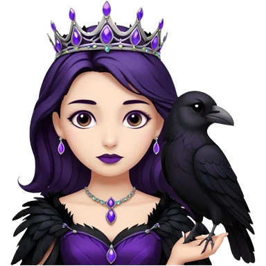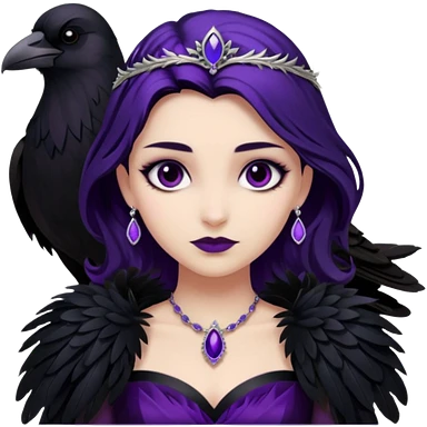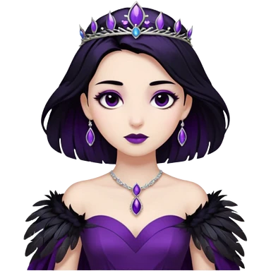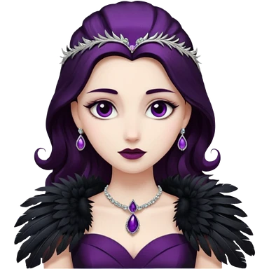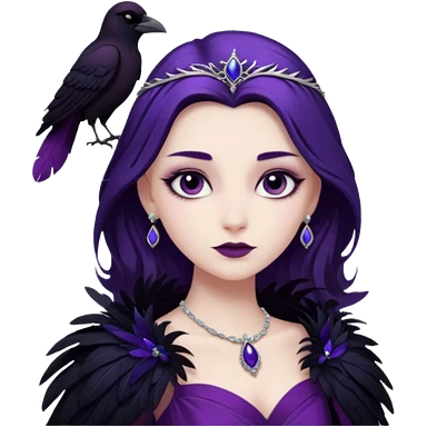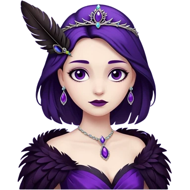 Raven Princess – feather brooch + plum gown emoji | AI Emoji Generator