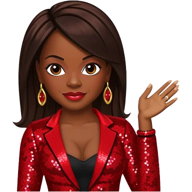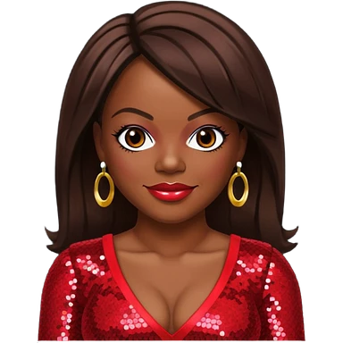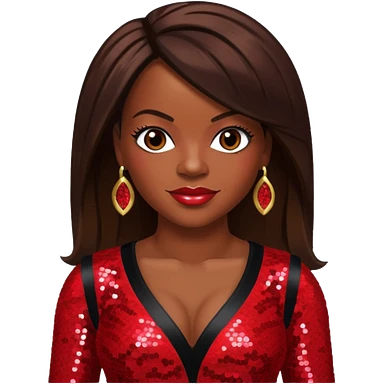Kandi Burruss from Xscape with long dark brown hair, red sequin outfit emoji