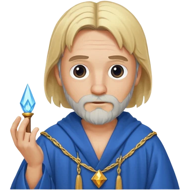 beardless wizard with bob-cut blonde hair and one blocked eye emoji