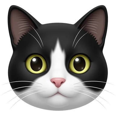 Create an emoji of this black and white cat. Make her head all black except for white on her right jaw. emoji