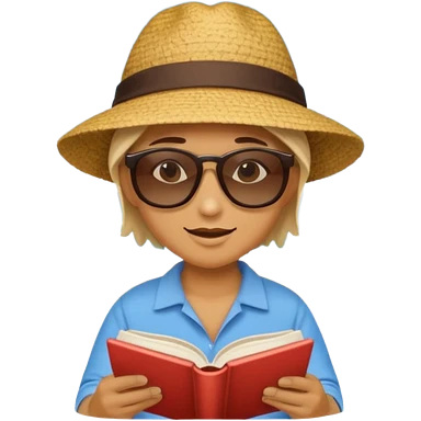 Girl with dark red wavy hair with reading a fantasy book emoji