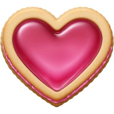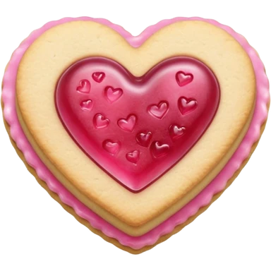 Realistic shortbread cookie in the shape of a heart with light red jelly emoji