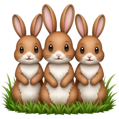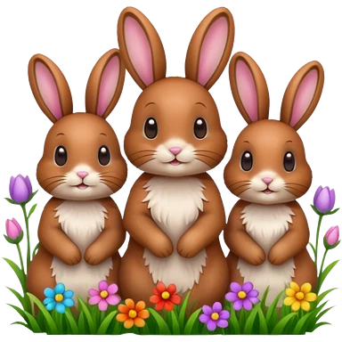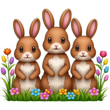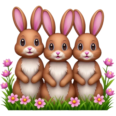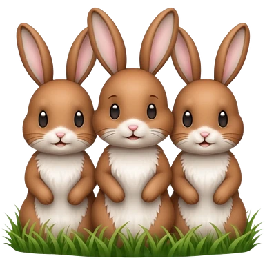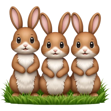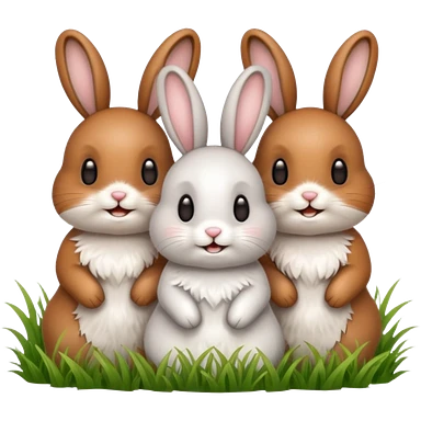 realistic 3 Bunny's standing in grass field with flowers happy looking foward emoji | AI Emoji Generator