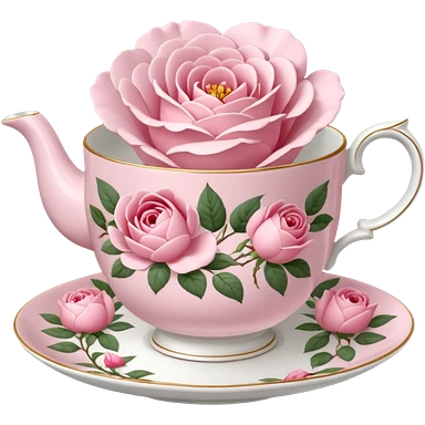 Realistic 1940's ultra detailed English tea rose, tea cup & saucer emoji