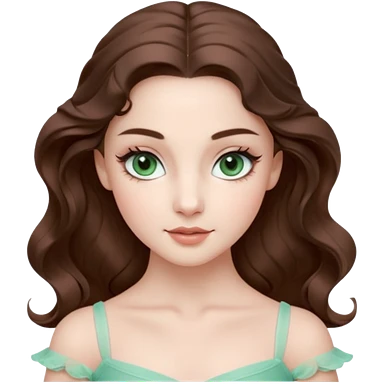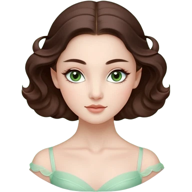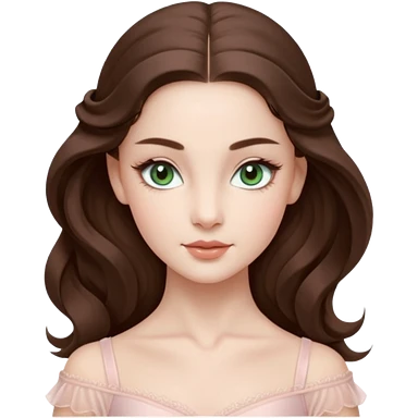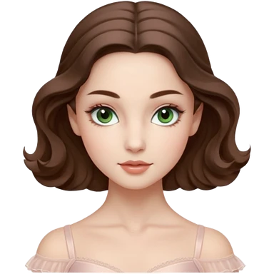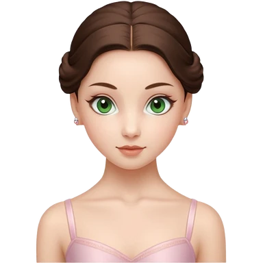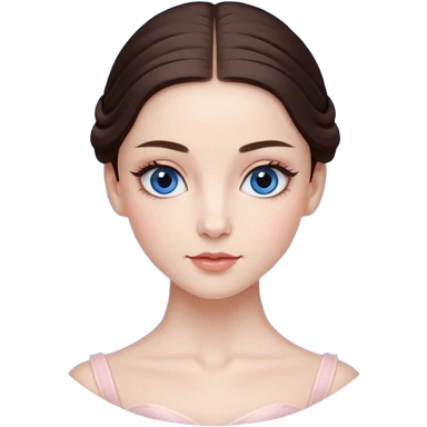 Realistic Ballerina Portrait, with porcelain-like skin featuring a natural rosy flush, illuminated by soft lighting that highlights the gentle contours of her face. Her Brunette hair flows in soft.Her deep blue eyes radiate framed by arched brows and long lashes. emoji | AI Emoji Generator