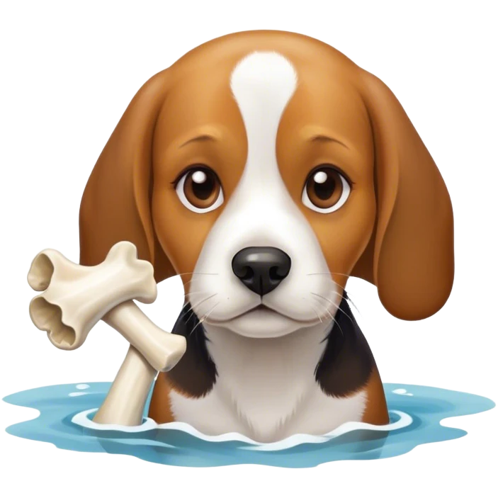 Realistic beagle with bone in mouth by the ocean emoji | AI Emoji Generator