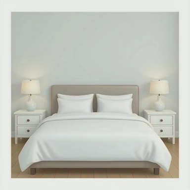 realistic bedroom neutral color only bed and nightstands emoji | AI Emoji Generator