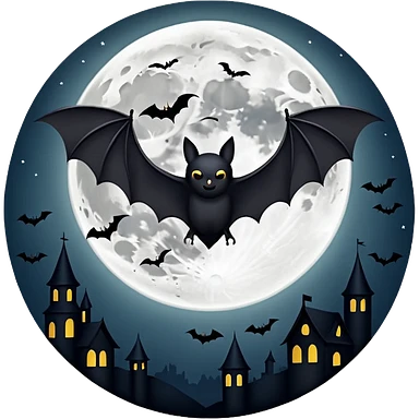 realistic full moon dripping red with vampire bat wings flying in front emoji