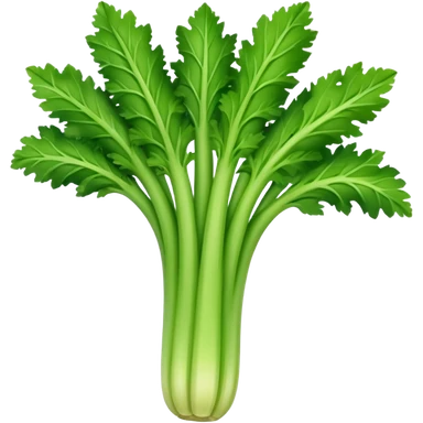A fresh celery stalk, green and crisp, with its long, fibrous stems and leafy tops. It’s often used in cooking or as a crunchy snack emoji