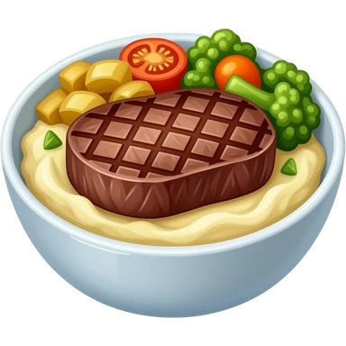 realistic -- grillades on mashed potato in bowl and cooked veges emoji