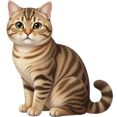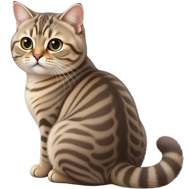 Realistic beautiful pretty straight-sitting cute Scottish Fold cat, back facing to the left, facing the viewer emoji