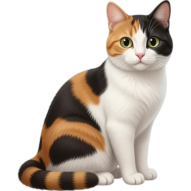 Realistic beautiful pretty straight-sitting Piebald cat, back facing to the left, facing the viewer emoji