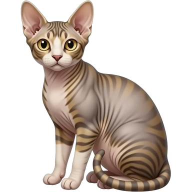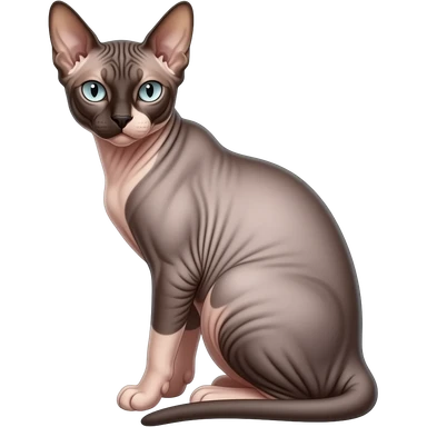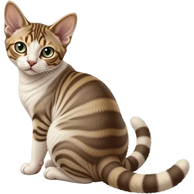 Realistic beautiful pretty straight-sitting Devon Rex cat, back facing to the left, facing the viewer emoji