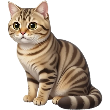 Realistic beautiful pretty straight-sitting cute Scottish Fold cat, with folded ears, back facing to the left, facing the viewer emoji