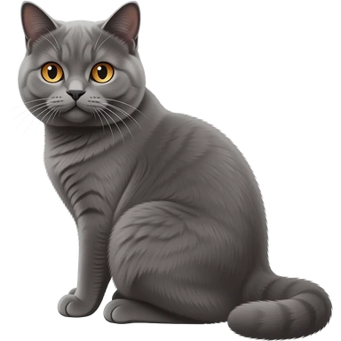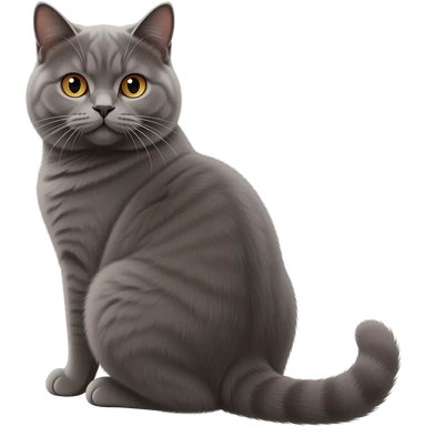 Realistic beautiful pretty straight-sitting British Shorthair cat, back facing to the left, facing the viewer emoji
