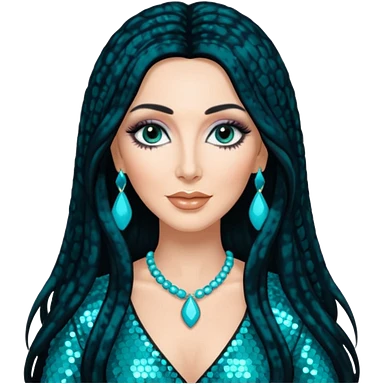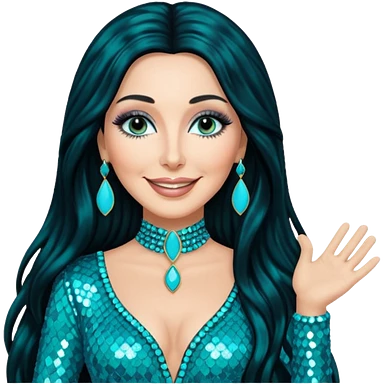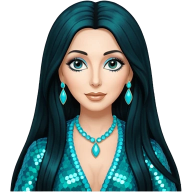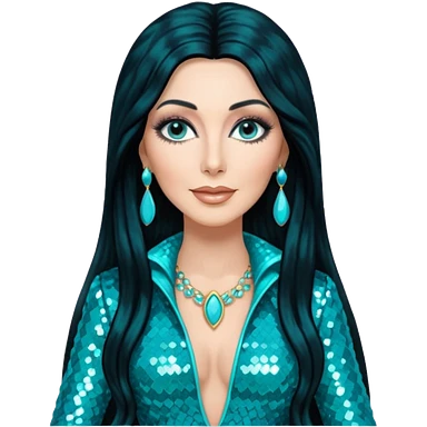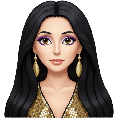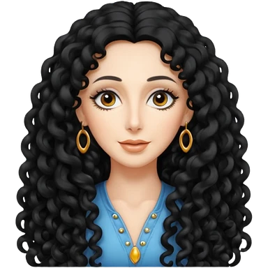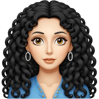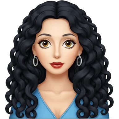 realistic cinematic singer Cher in a typical rocker's dangerous attractive outfit with leather and lace, half-naked, huge curly hair like in the video If I Could Turn Back Time emoji | AI Emoji Generator