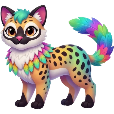 Colorful dark tropical feathery tribal pale light fruity pastel white glorious iridescent divine exotic cute cool beautiful beautiful fantasy-caracal-civet-genet-sergal-vernid-Gryphon-Cacomistle-Trico-oncilla-animal-Fakémon-hybrid-fursona (full body) emoji