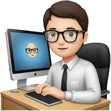 Havanese talking on a cellphone sitting at a computer desk emoji