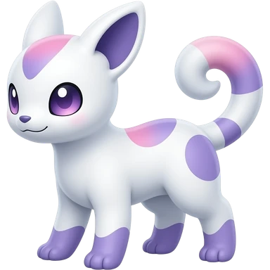 Pastel whitish glossy oily smooth silky soft White with indigo-Violet-purple-pinkish-gradient markings beautiful handsome gorgeous aesthetic colorful vibrant Vernid-Trico-species-Fakemon-creature by LiLaiRa, 4 legs, 1 tail, random markings, (full body) emoji