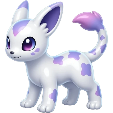 Hyper-realistic Shiny iridescent glossy oily smooth silky soft White with indigo-Violet-purple-pinkish-gradient markings beautiful handsome gorgeous aesthetic colorful vibrant Vernid-Trico-species-Fakemon-creature by LiLaiRa, 4 legs, 1 tail, random markings, (full body) emoji