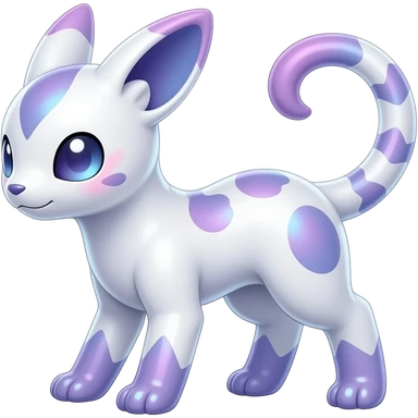 Flecked speckled oriental Hyper-realistic Shiny iridescent glossy oily smooth silky soft White with indigo-Violet-purple-pinkish-gradient markings beautiful handsome gorgeous aesthetic colorful vibrant Vernid-Trico-species-Fakemon-creature by LiLaiRa, 4 legs, 1 tail, random markings, (full body) emoji
