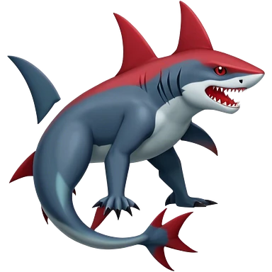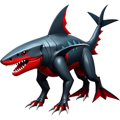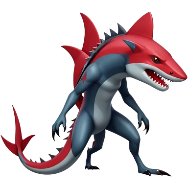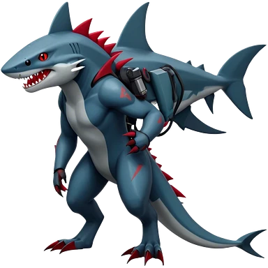 Realistic dark edgy futuristic modern advanced Sharpedo-Houndoom-Scizor-sergal-hybrid-animal creature with a shark-tail and red scars, full body, with cool sharp markings emoji