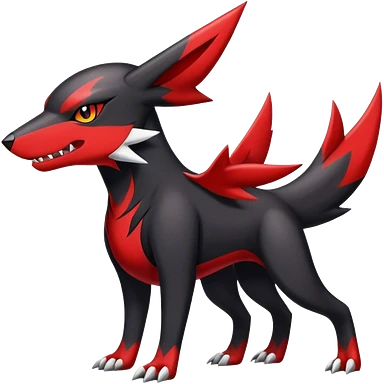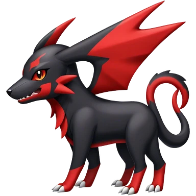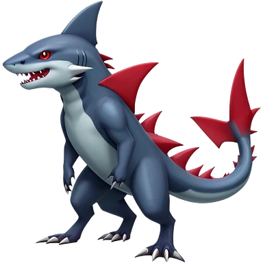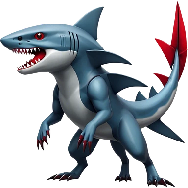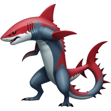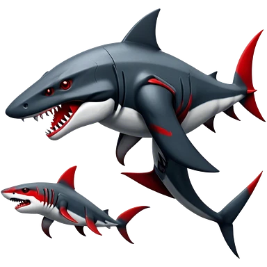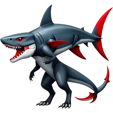 Realistic dark edgy futuristic modern advanced Sharpedo-Houndoom-Scizor-sergal-hybrid-animal creature with a shark-tail and red scars, full body, with cool sharp markings emoji | AI Emoji Generator
