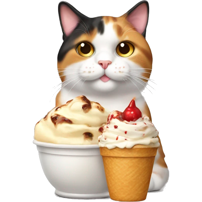 Realistic Fat calico cat with sundae emoji | AI Emoji Generator