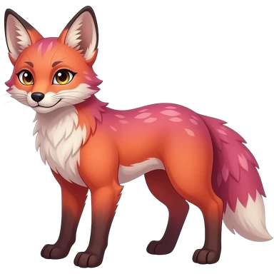 Realistic cute Feral Rare Fantasy dark pastel gradient-pink-red-orange Vernid-Fionbri-species by LiLaiRa, random markings, full body, 4 legs, thin tufted tail emoji