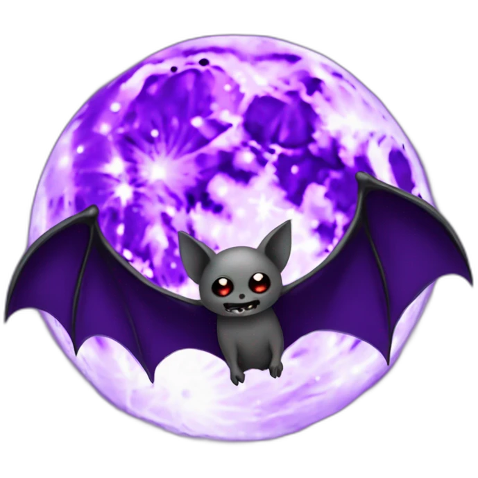 realistic full moon dripping purple behind with vampire bat wings flying in front emoji | AI Emoji Generator