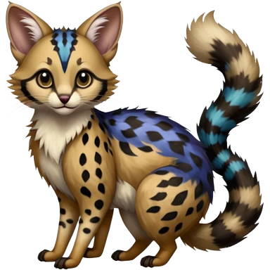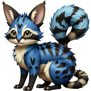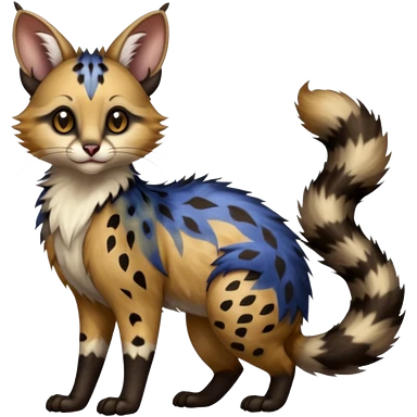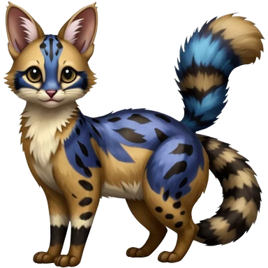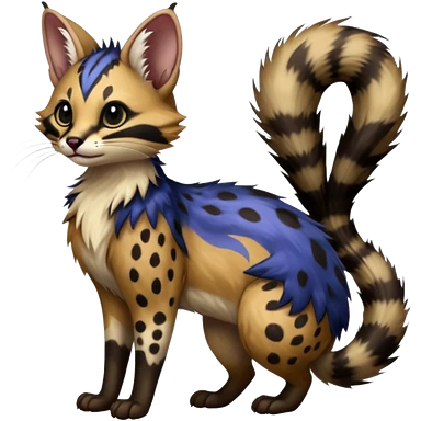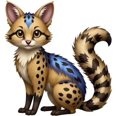 realistic fur with random dark markings beautiful elegant pretty precious cute Fakémon-Pokémon-opossum-feline-serval-caracal-chinchilla-Furret-Minccino-hybrid-creature with a big fluffy bushy tail (full body)emoji
